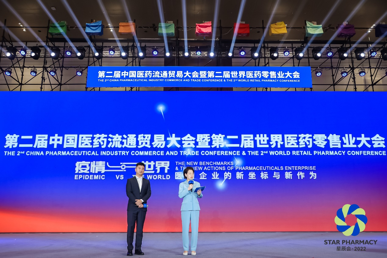 9月8日上午,由长沙市人民政府、中国医药物资协会共同主办的2022年第二届中国医药流通贸易大会暨第二届世界医药零售业大会(第二届星辰会)在星城长沙隆重开幕。尊龙凯时集团董事长刘景萍受邀担任大会主持人并荣获“医药工业领军人物”称号。